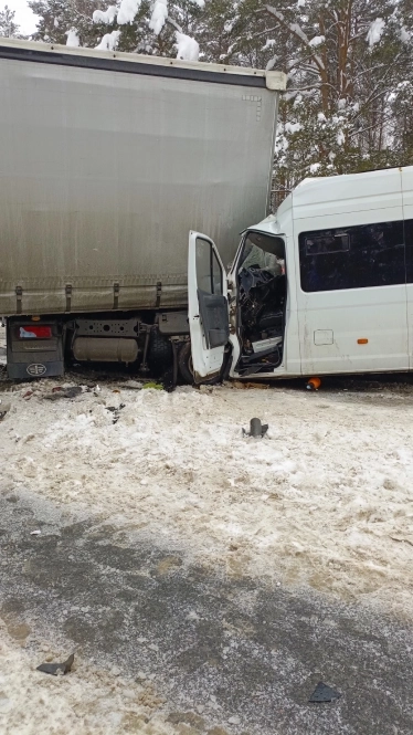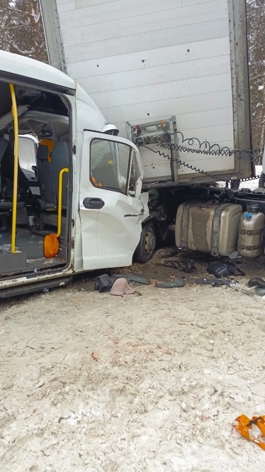 По предварительным данным, водитель большегруза, который направлялся в сторону Нижнего Новгорода, не справился с управлением. Машину занесло, и она вылетела на встречную полосу. Там грузовик врезался в рейсовый маршрутный автобус «ГАЗ», ехавший во встречном направлении.