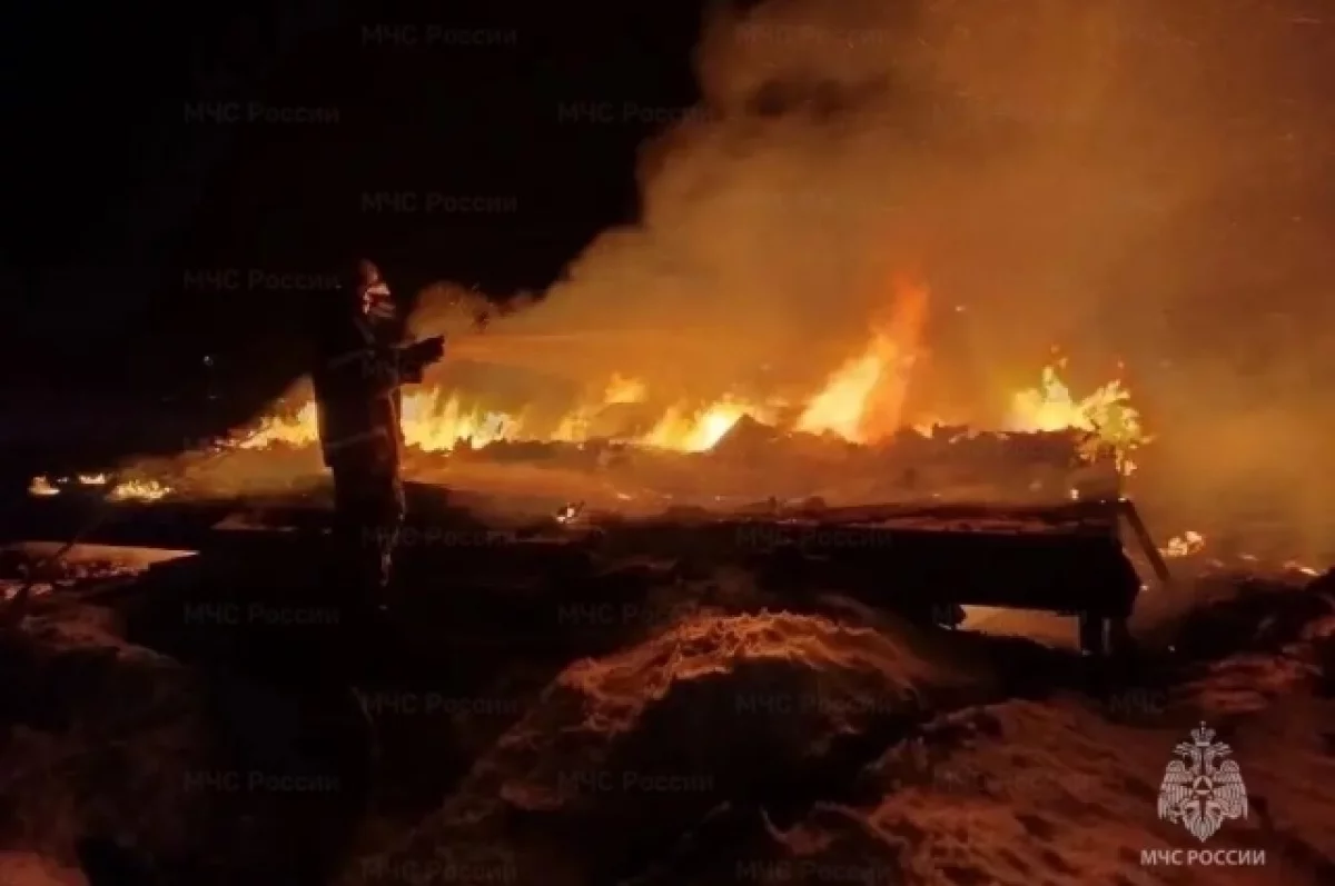 Сигнал о возгорании поступил на пульт МЧС в 04:03. По предварительным данным, огонь охватил площадь в 100 квадратов.