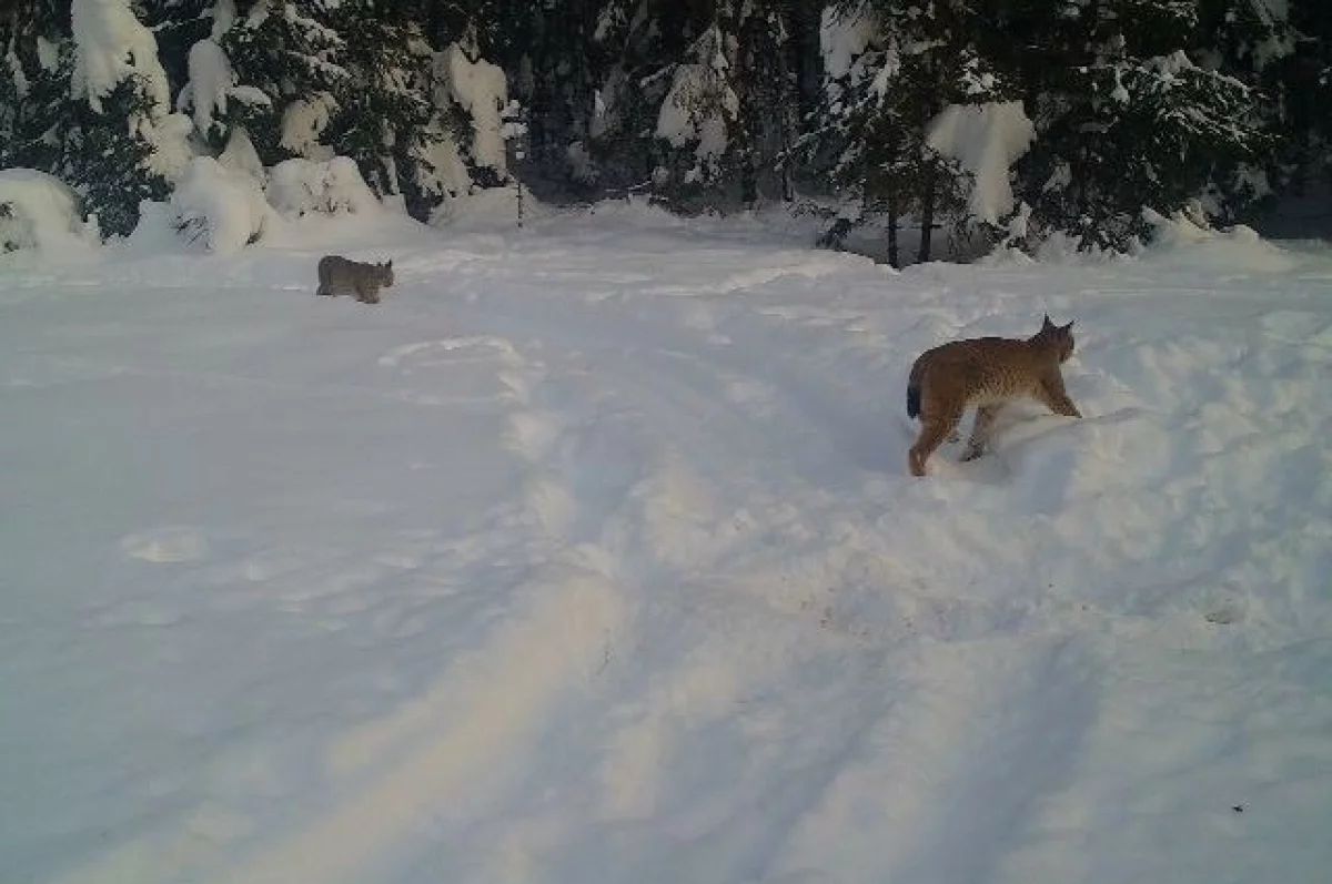 В Алешинском охотничьем хозяйстве (Ковровский округ) фотоловушка запечатлела сразу двух взрослых рысей в лесном массиве.