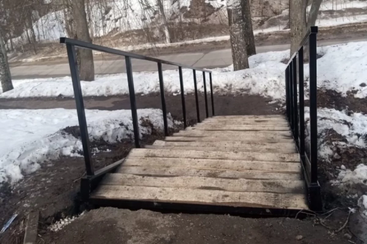 Однако прокурорская проверка выявила грубые нарушения. Вместо стальных винтовых свай длиной 1,5 м использовали трубы длиной 1,2 м — и в меньшем количестве (установили 22 сваи вместо 36 предусмотренных). Кроме того, при строительстве двух лестниц (от Никольского монастыря) вместо металлического прямоугольного профиля применили материал с более низкими прочностными характеристиками. Ограждения лестниц лишены горизонтальных и вертикальных промежуточных элементов — это снижает безопасность конструкций.